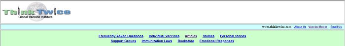 The Thinktwice Global Vaccine Institute was established in 1996 to provide parents and other concerned people with educational resources enabling them to make more informed vaccine decisions. Thinktwice encourages an uncensored exchange of vaccine information, and supports every family’s right to accept or reject vaccines.